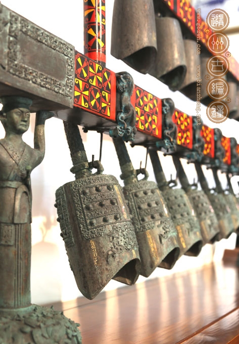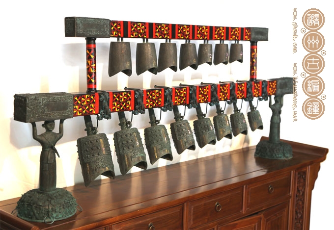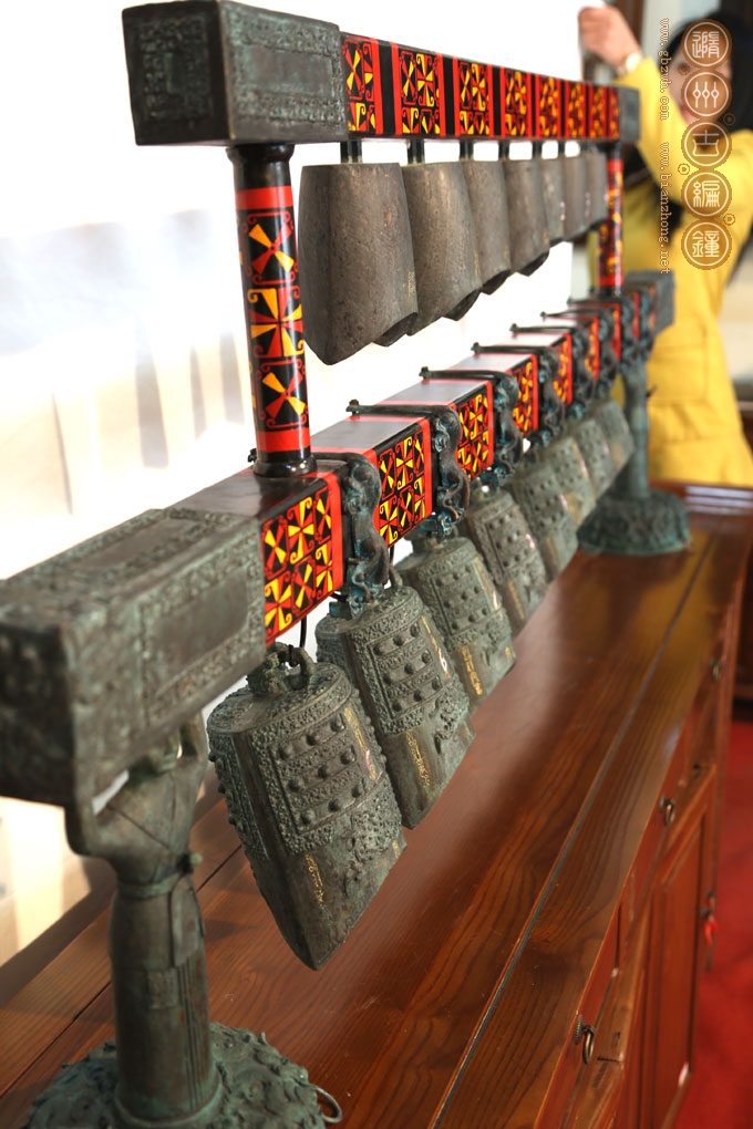 材質(zhì):編鐘及配件:錫青銅 鐘架:實(shí)木彩繪